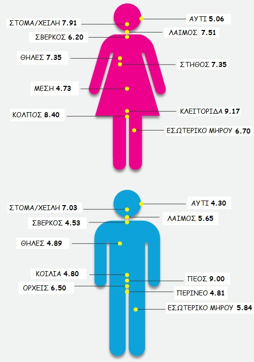Δείτε πώς αξιολόγησαν οι συμμετέχοντες τα σημεία του σώματος από το 1 μέχρι το 10.
